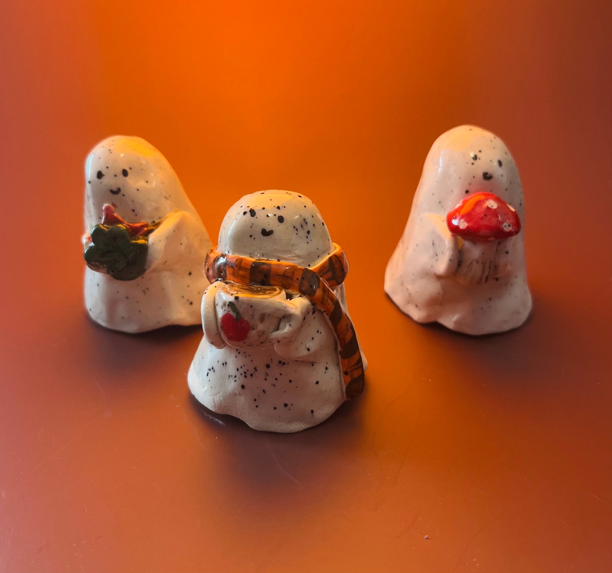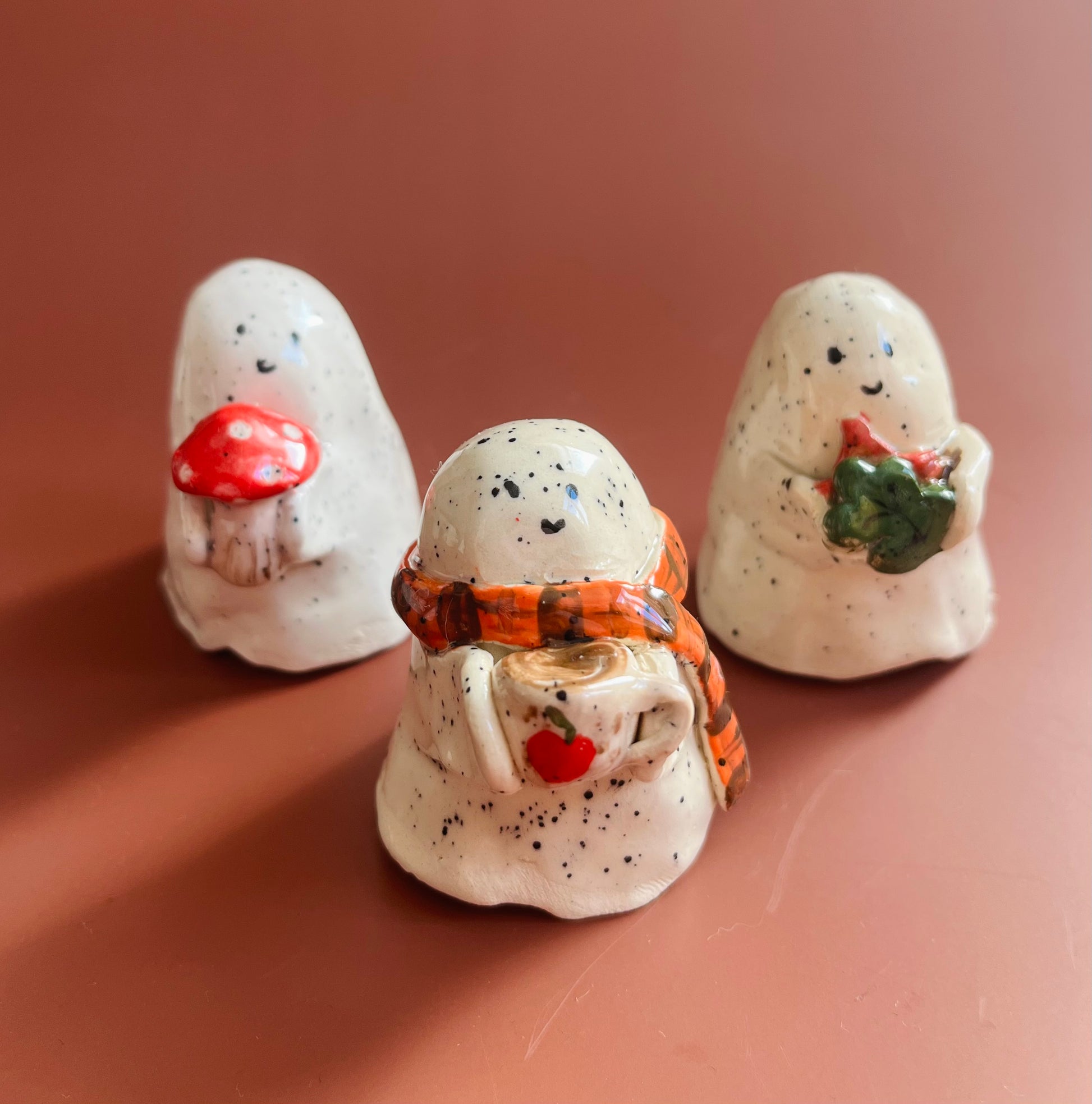 Meet the newest tiny ghosts, each carrying something special—a toadstool, a pile of autumn leaves or a ghost with a mug wearing a scarf ! These little ghosts stand just 5–6 cm tall, making them the perfect size to add a bit of charm to any space. Which one will you choose?