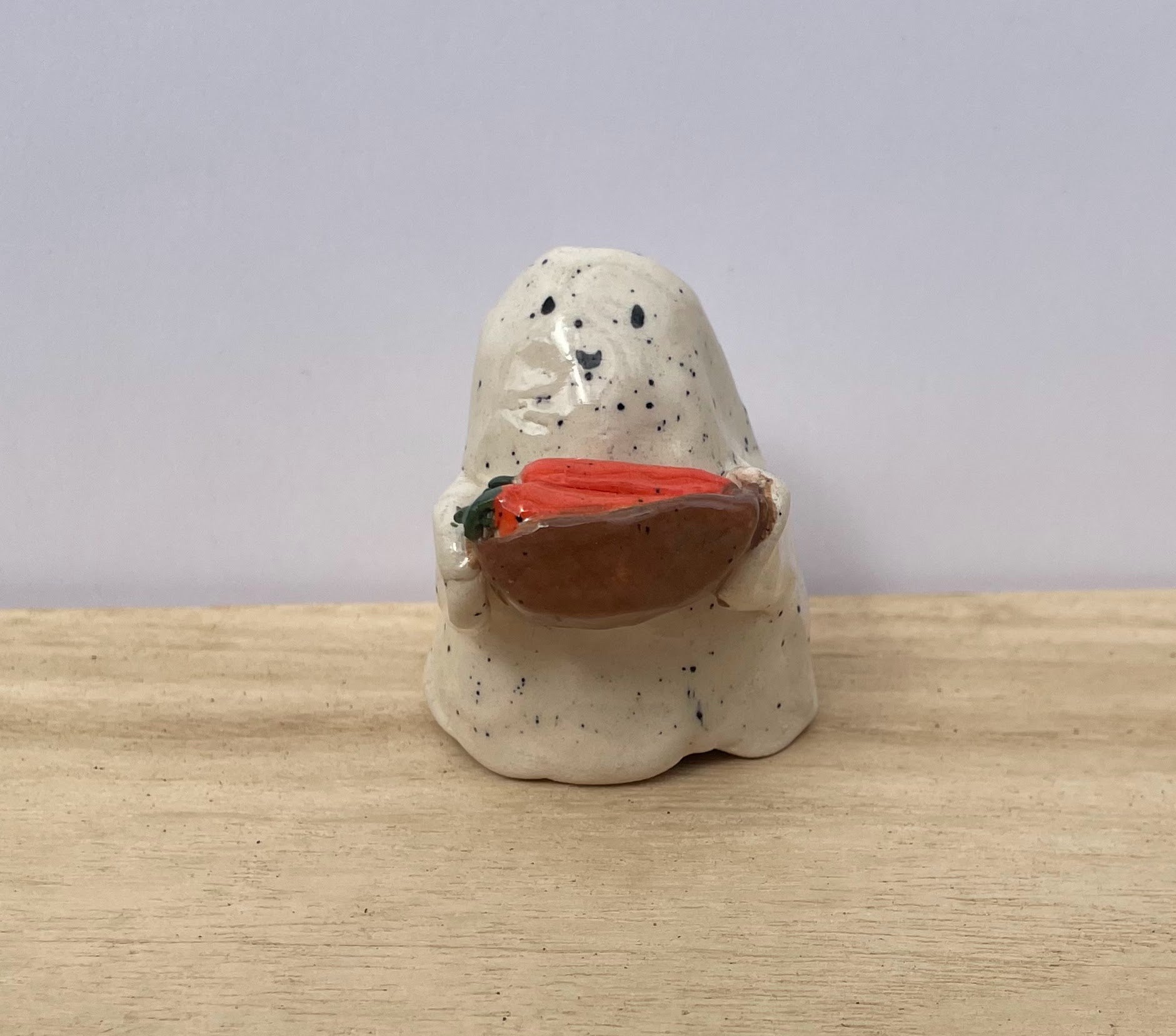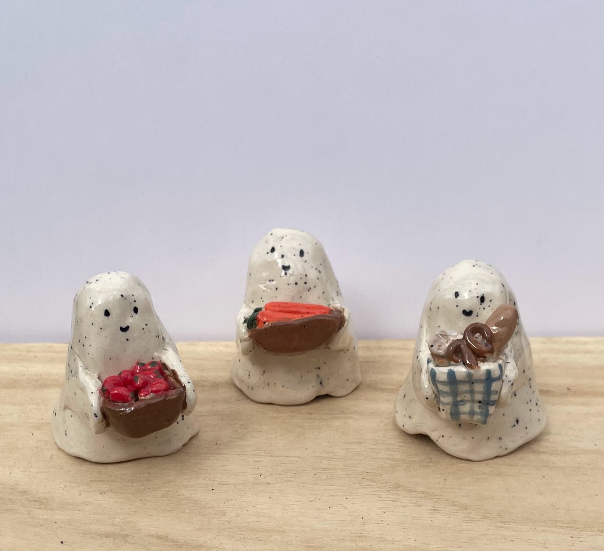 Meet the newest tiny ghosts, each carrying something special—a basket of carrots, a basket of strawberries, or a bag of pastries. These little ghosts stand just 5–6 cm tall, making them the perfect size to add a bit of charm to any space. Which one will you choose?